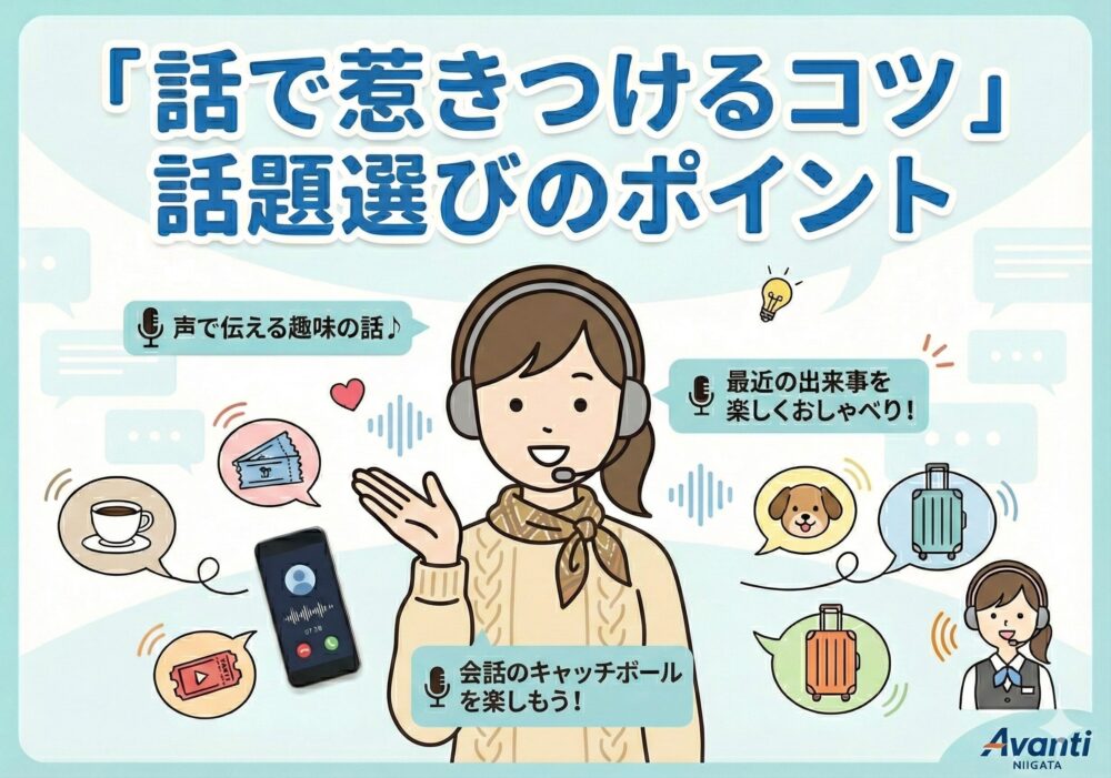 会話で“惹きつける力”が大事っ✨ こんにちは、アヴァンティ新潟店スタッフです♪ チャットレディのお仕事は、文字通り “チャット=文字での会話” がメイン。お客様の顔も声も表情も見えない中で、“どう魅力を伝えていくか” が […]