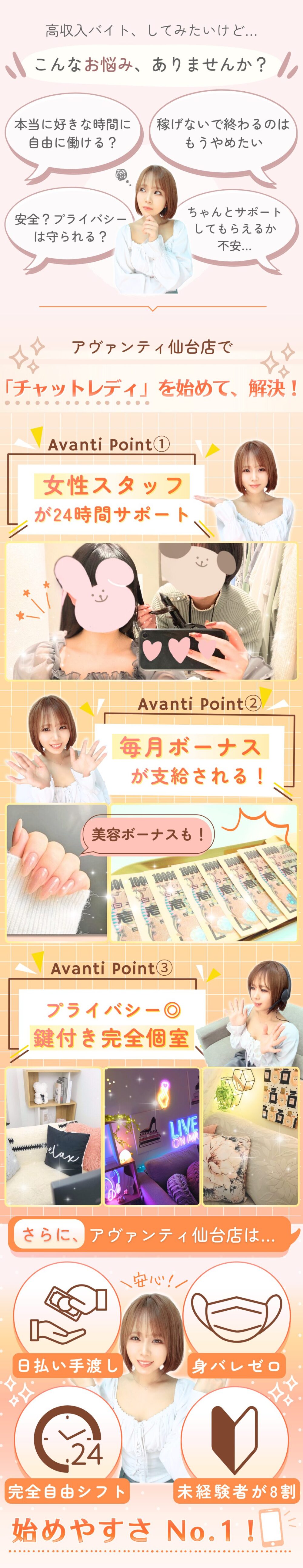 アヴァンティ仙台店は、【自由と高収入】を実現できる実績20年のチャットレディ事務所。