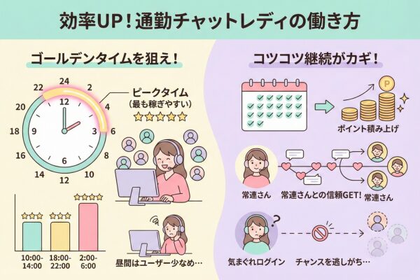 チャットレディの魅力は24時間好きなときに働ける自由さですが、実は「いつ働くか」で稼ぎやすさが大きく変わります。