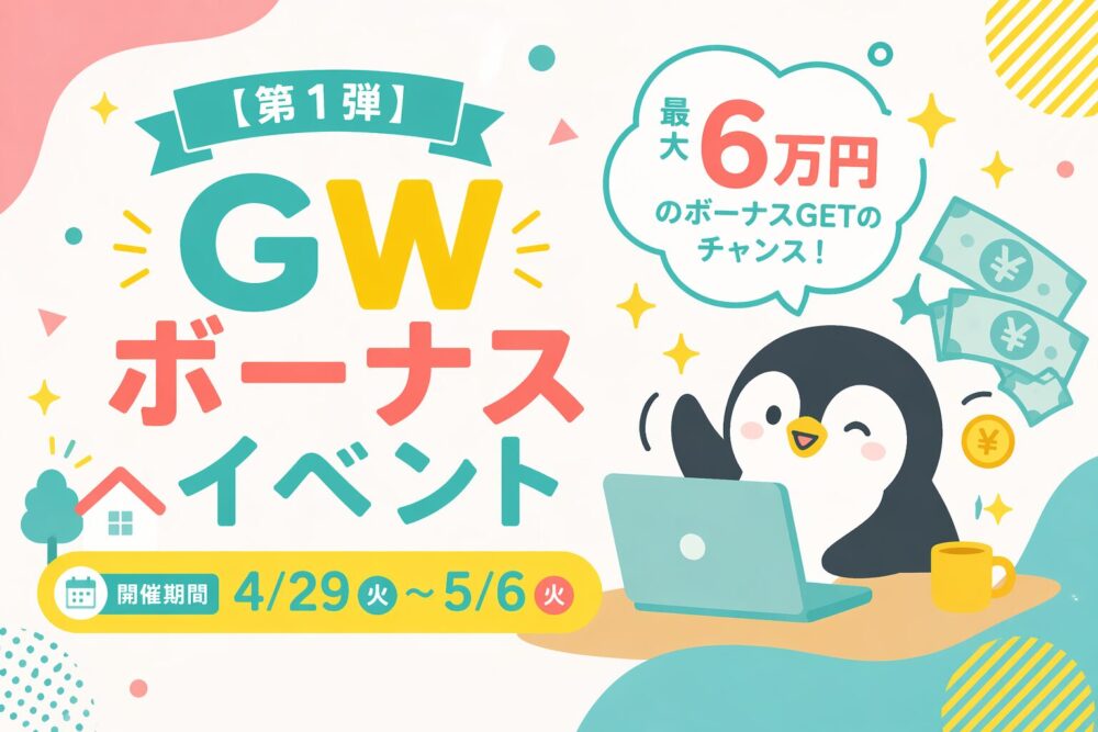 最大6万円のボーナスが手に入るチャンスです。(開催期間:4/29〜5/6)
